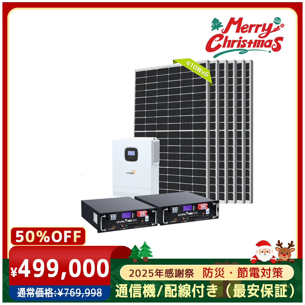LVYUAN 5000Wハイブリッドシステムは、太陽光発電+商用電力+蓄電池を組み合わせ、家庭全体の電力をカバーできる大容量モデルです。