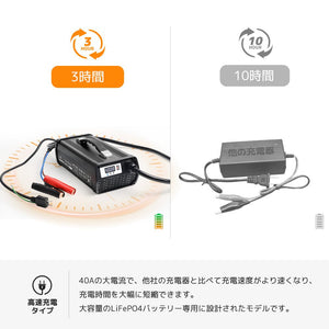 LVYUANのLiFePO4充電器は、最大40Aの高出力で、一般的な充電器と比べて充電時間を大幅に短縮。