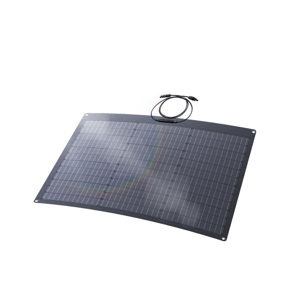 【湾曲できるソーラーパネル】柔軟な素材で形成され、薄くて軽いソーラーパネル。従来のソーラーパネルのような架台は不要、屋上や壁面等様々な場所に取り付け可能です。アダプタボルトで固定するか、パネルの背面に貼り付けて固定できます。キャンプの際に使用するライトやスマートフォンの充電など、比較的大きな電力を必要としない場面での利用に向いています。