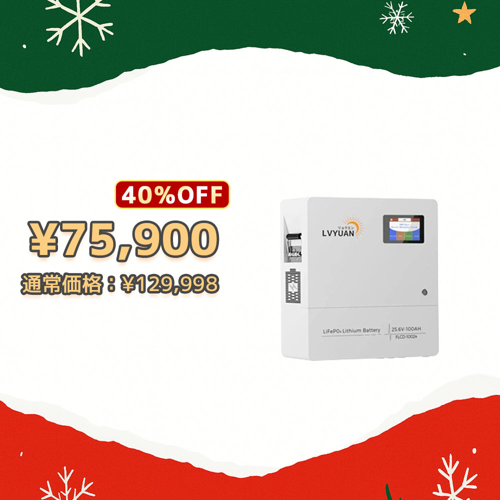 LVYUAN 25.6V100Ahリン酸鉄リチウムイオンバッテリーは同じ大きさの鉛蓄電池の3~4倍のエネルギーを蓄えることができます。しかも、鉛蓄電池の重さのわずか1/3(本体20KG)になり、取り付けも移動もより便利になります。4000サイクル以上の優れた寿命、約25年間使用できる長寿命です。放電深度が100%DODの状況で4000サイクルでき、1日に1回充放電しても10年まで使えます。放電深度によって、サイクル回数がもっと長くなれます、80%DODで6000サイクル、60%DODで15000サイクル実現できます。