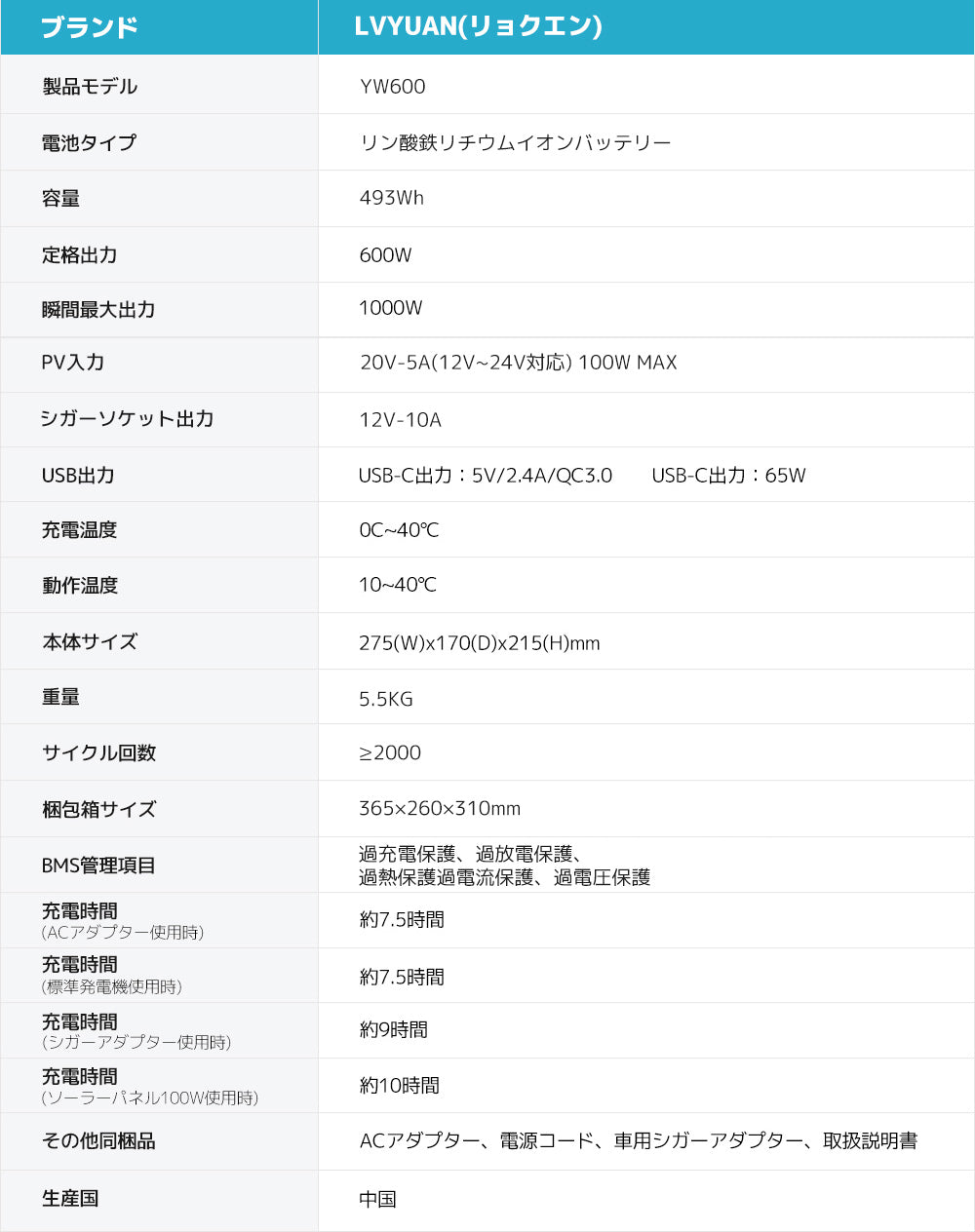 LVYUAN(リョクエン)600W|493Whポータブル電源 YW600-Blue