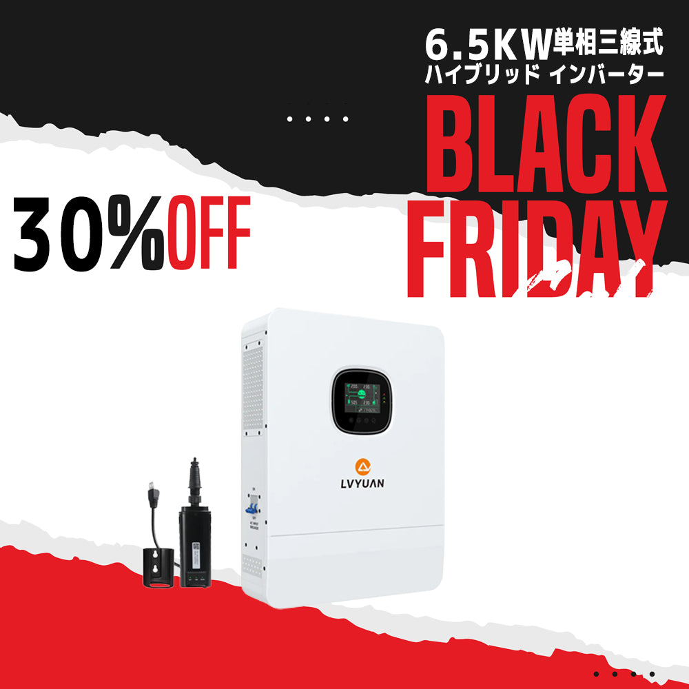 LVYUAN 6500W 単相三線式ハイブリッドインバーターは、太陽光発電+商用電力+蓄電池を組み合わせ、家庭全体の電力をカバーできる大容量モデルです。