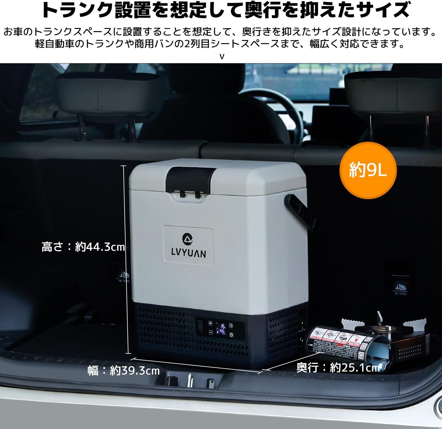 【小さすぎないコンパクトな設計】コンパクトながら約9Lの保存容量があるので小型で持ち運びに便利なサイズながら、キャンプやバーベキューなどでも十分に使える保存容量。小型車やコンパクトカーの座席でも困ることなく車載することができるので、どこへでも持ち運びできて便利です。