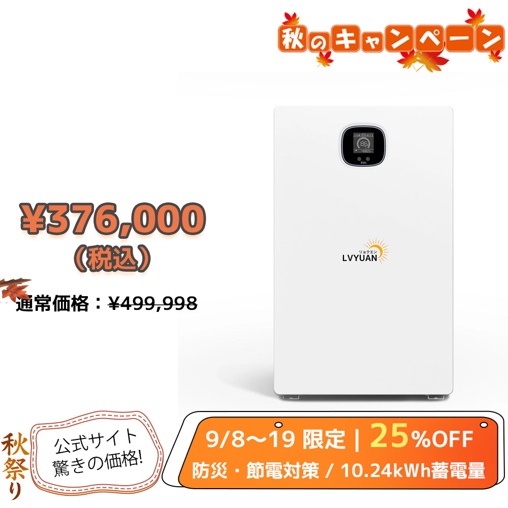 LVYUAN 51.2V 200Ahリン酸鉄リチウムイオンバッテリーは、200AのBMSと10000Wの出力を備えており、10000Wハイブリッドインバーターと組み合わせて、大型家電製品如電子レンジやエアコンなどを同時に動作させることも可能です。さらに、最大9つのバッテリーを並列に接続すれば、90kWhの大電力需要にも対応できる拡張性があります。
