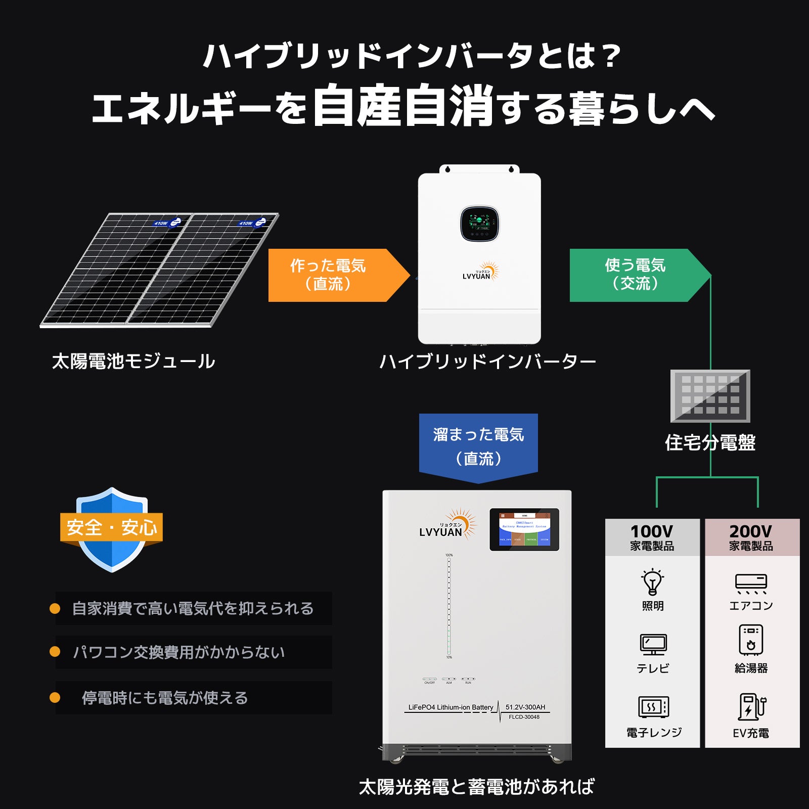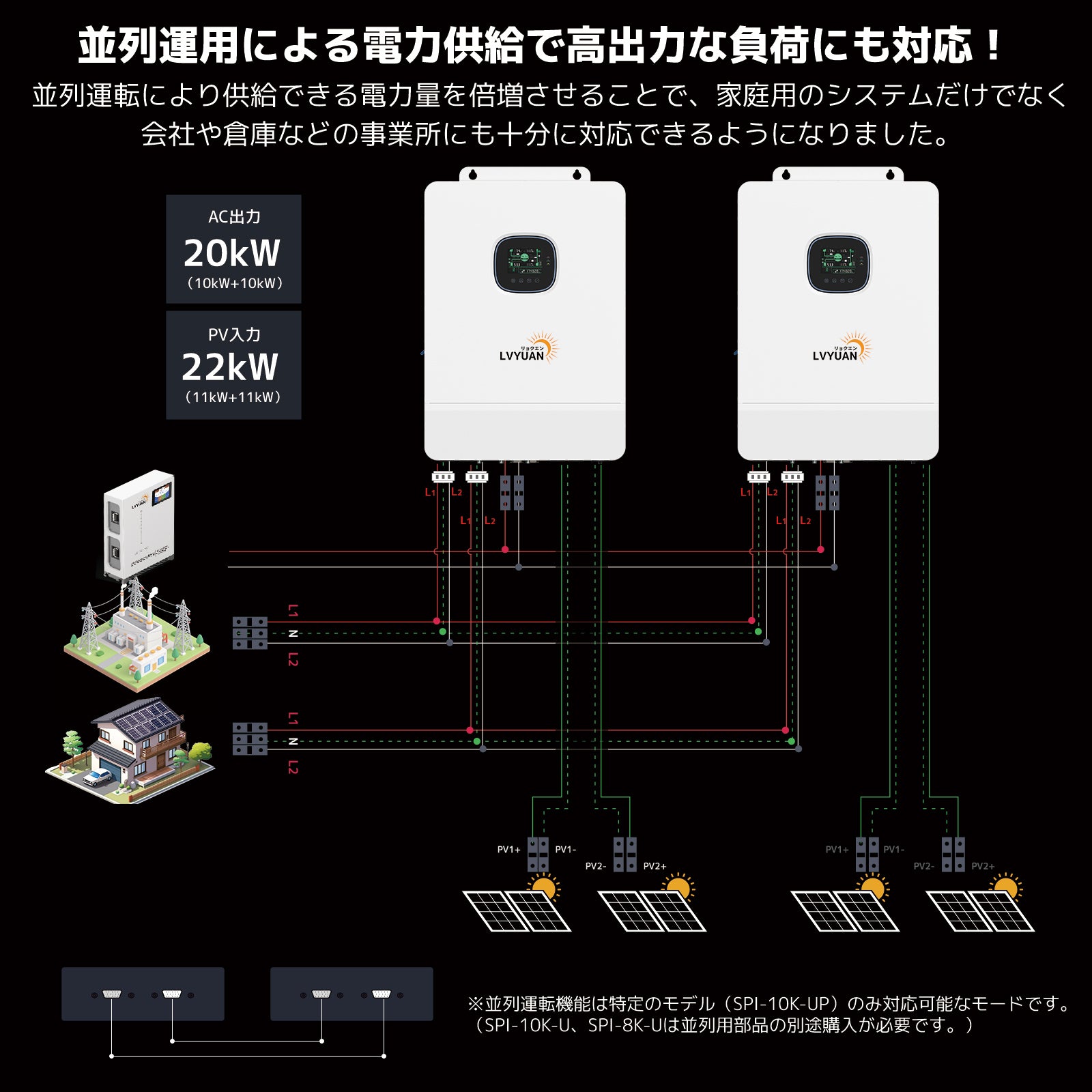 ✅【LVYUAN 10000W 単相三線式 ハイブリッドインバーター】