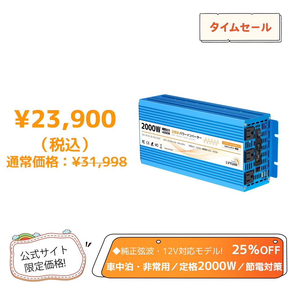 LVYUAN 純正弦波インバーター 2000W DC12V(直流)AC100V(交流)