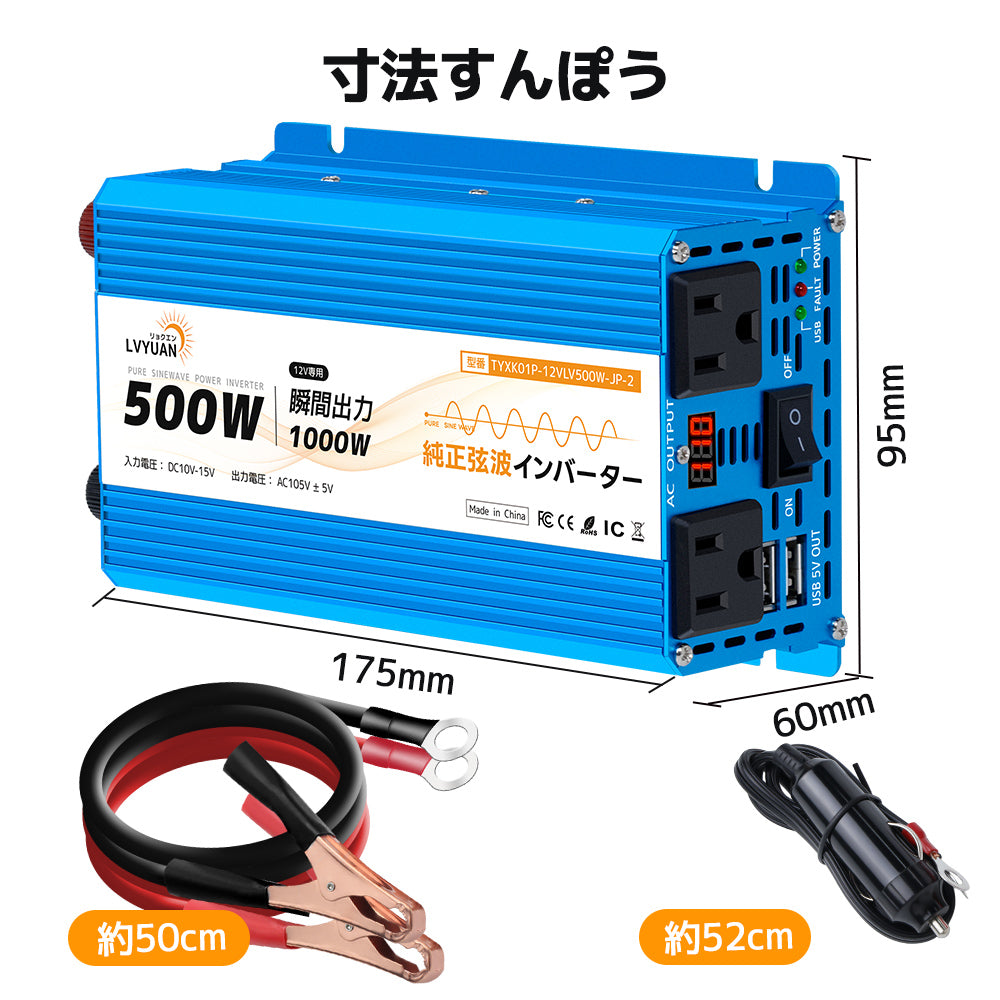LVYUAN 純正弦波インバーター 500W DC12V(直流)AC100V(交流)